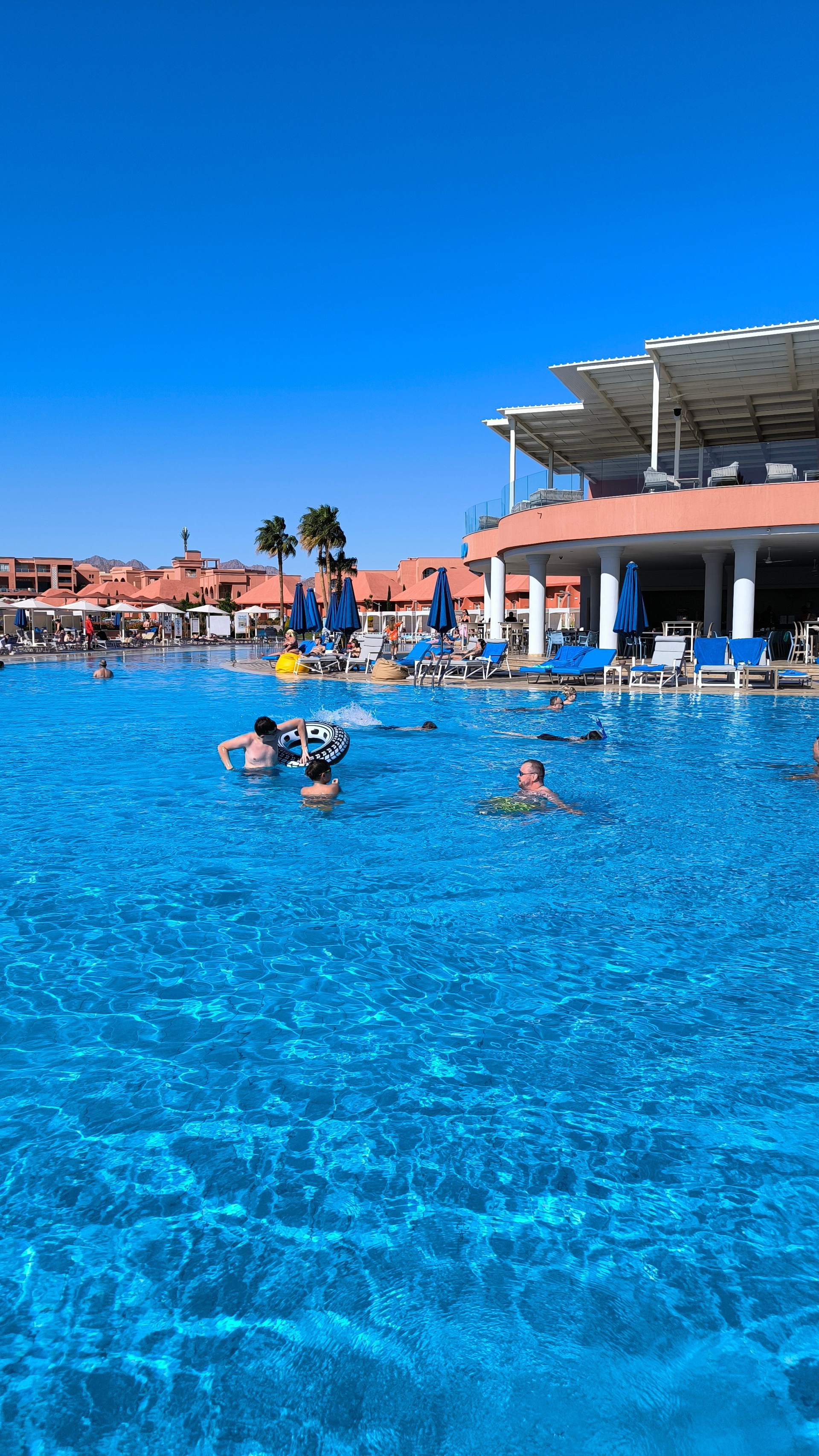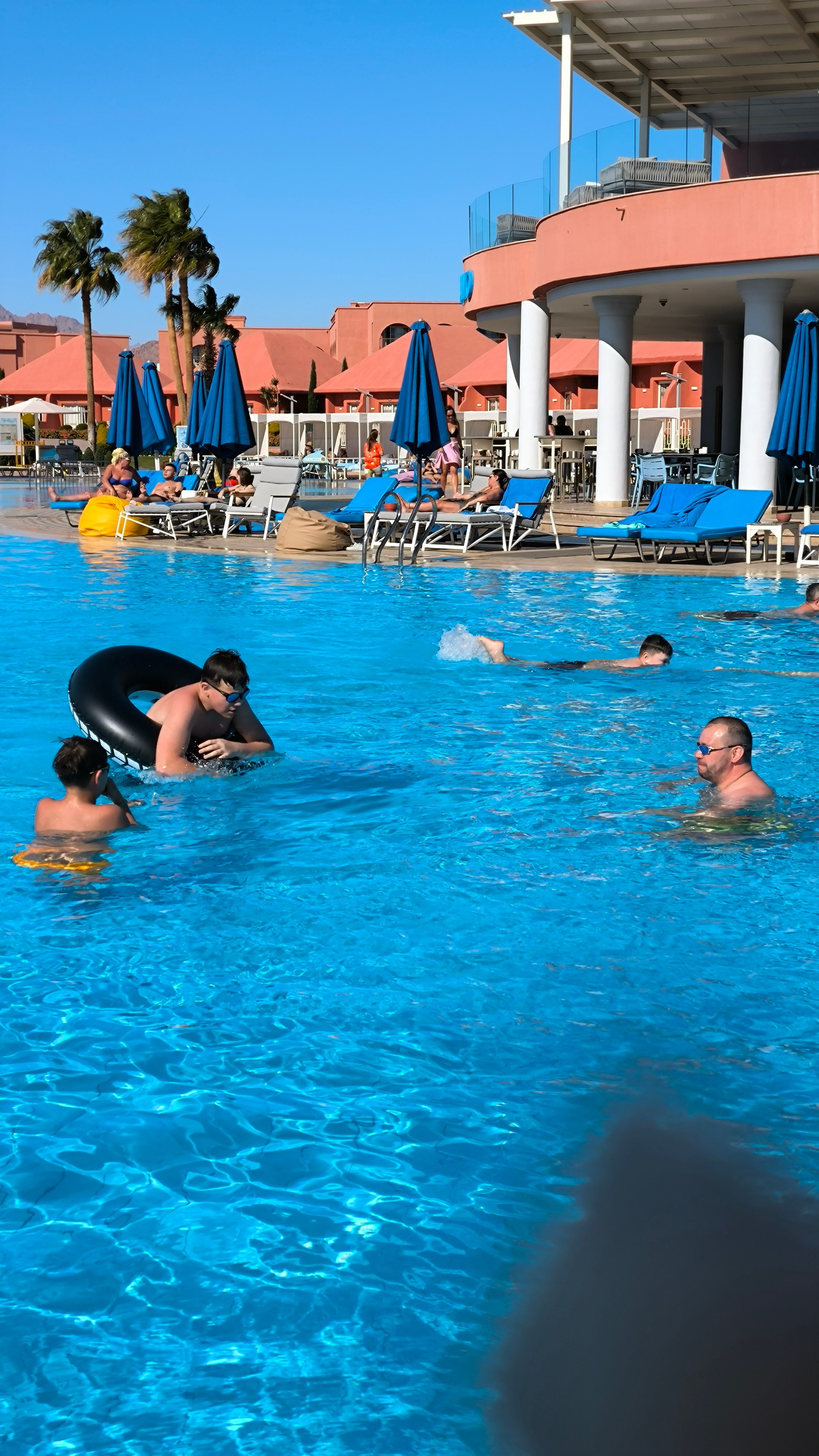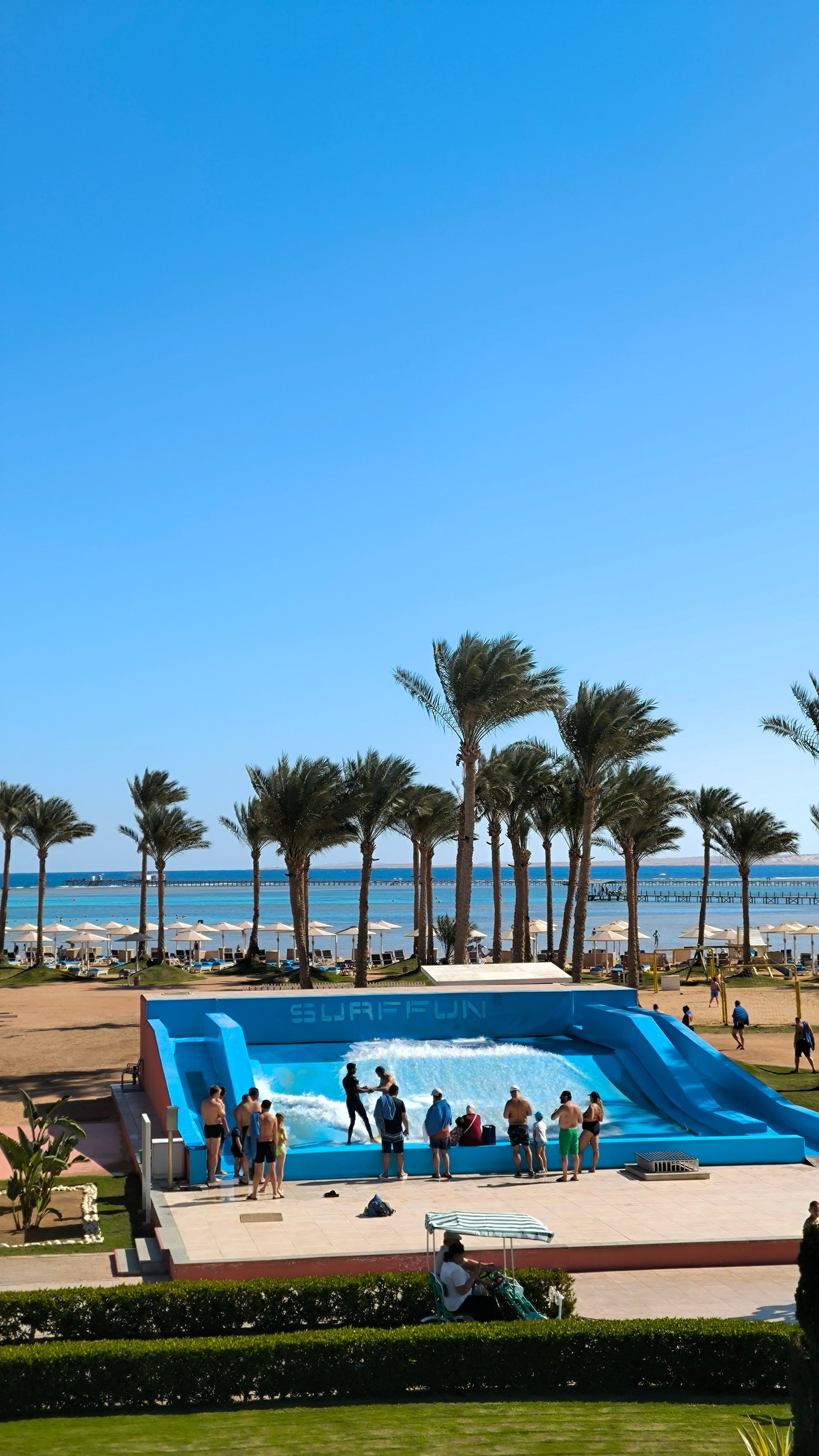 Лучшая география: из номера — сразу в теплый, почти горячий бассейн. Дети обожали его! Рядом — аттракцион для серфинга с искусственной волной, за которым весело было наблюдать.