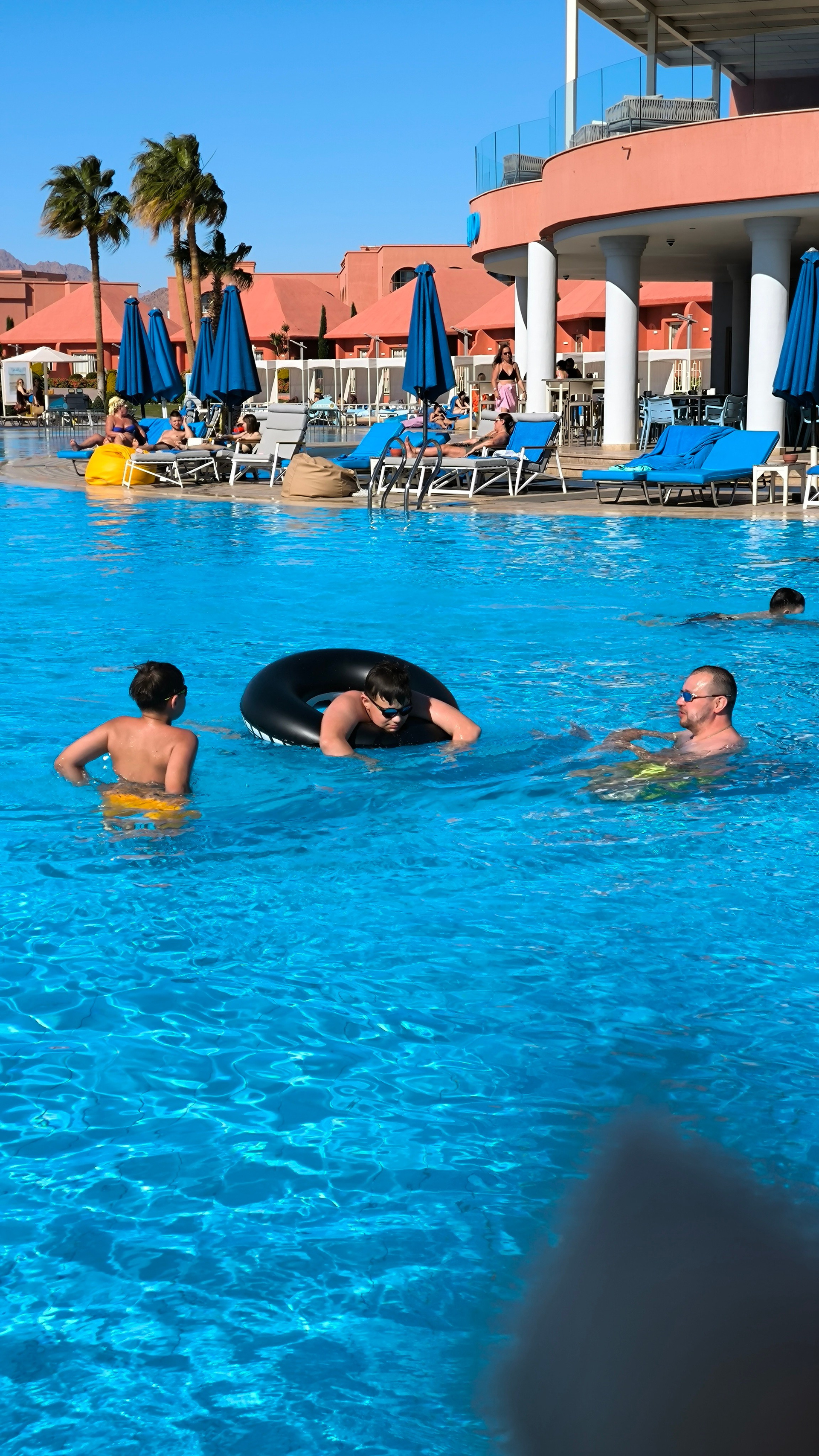 А главное — от этого бассейна открывался потрясающий вид на море с небольшой террасы. Пока дети плескались, мы наслаждались этой панорамой.